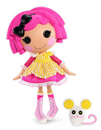 Winter is a pale lalaloopsy with black button eyes and very pale pink cheeks. Her hair is pure white flock with very curly, intricate bangs while her hair is pulled in three bunches that may be snowballs. She wears a pink pair of earmuffs and a small black tophat with pink bow on the corner of her head.